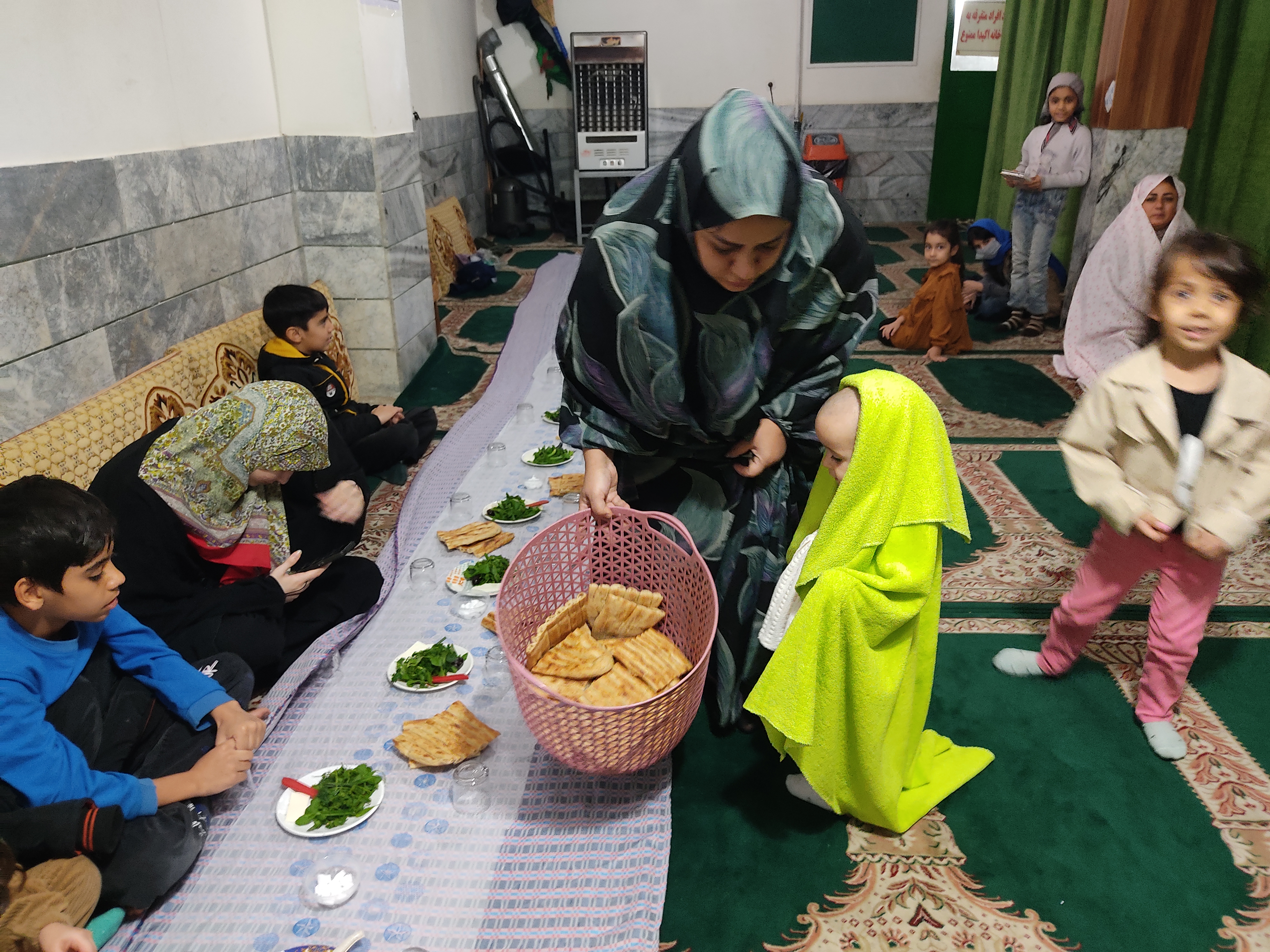 در مسجد پنج تن آشخانه به همت خواهران گروه جهادی شهید صمدی هر شب سفره افطاری ساده برپا میشود.